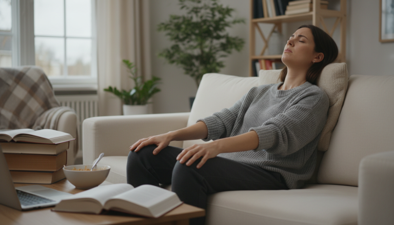 - Dial down stimulation: Turn off loud music, step away from stressful screens or arguments, and sit in a quieter space if possible.