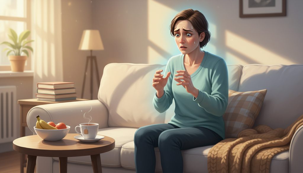 - Food: Eat regularly. Blood sugar crashes can make anxiety and physical symptoms worse.